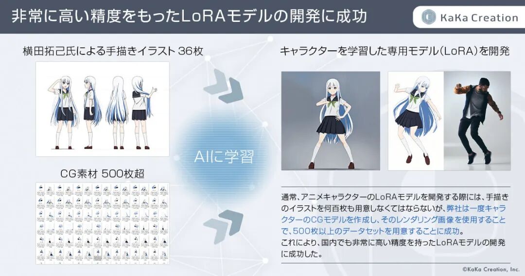 但就算是这样两个相对简单的角色,也是由角色设计师横田拓海绘制了36张草图,外加团队又打包了500张CG草图,最终才在Lora中生成的高精度模型。