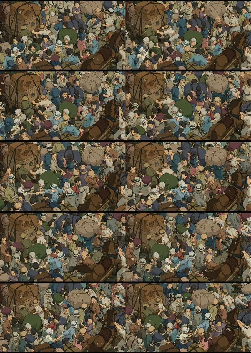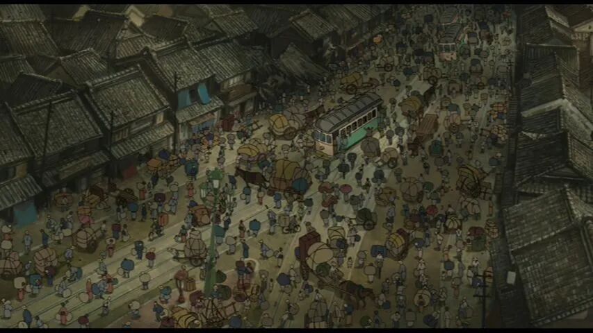 当初电影《起风了》中的大地震场景里,每一个出现的角色都是手绘完成的。仅仅四秒钟的人群场景,就花了一年零三个月的时间绘制。