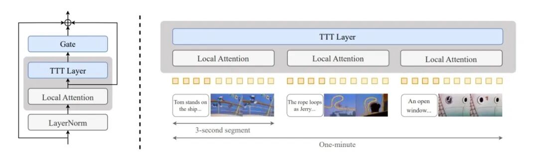 我们在预训练的Transformer模型中加入了测试时训练(TTT)层,通过微调使其能生成具有强大时间连贯性的一分钟《猫和老鼠》动画。