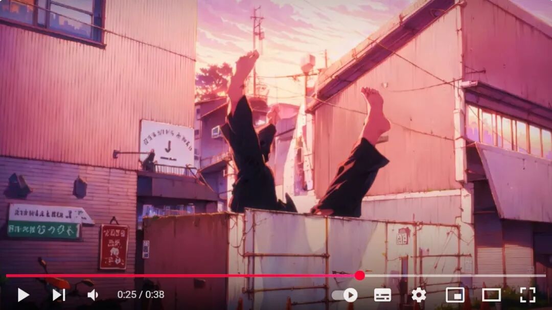 但修饰并不是修正。AI构建的背景难免会有不合逻辑的地方,可如果将这些失误置于虚拟世界中,传统动画无法容忍的拙劣感则自然而然地被消解,继而转变成了一种“猎奇向”的呈现。
