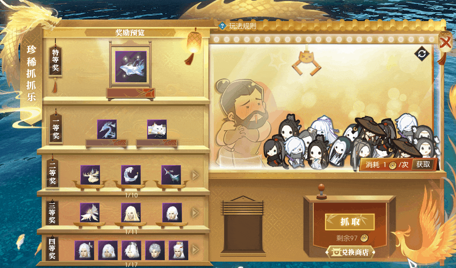 a) 更新后,可通过金色盲盒抽取流派小狗装扮,和桌宠小狗一起逍遥江湖~