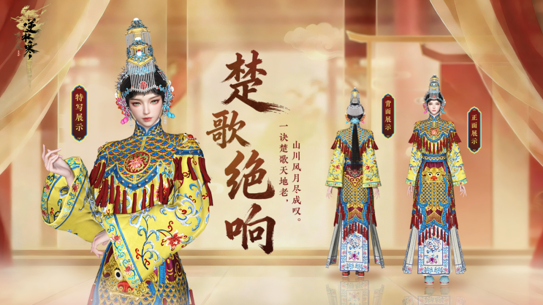 2) 参与梨韵阁·瓦舍听戏玩法,完整观赏新曲目即可获得说英雄成就,解锁独占奖励京剧主题时装【楚歌绝响】(女)/【乌江聆梦】(男)、配套发型、配套面容【姝影】(女)/【墨慨】(男)。
