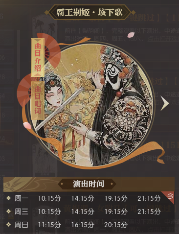 3) 原周日【牡丹亭】戏剧表演下架,调整为【霸王别姬】。