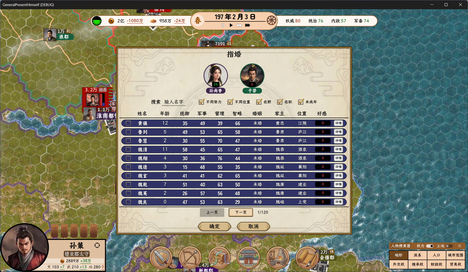 相应的,我调整了联姻的好感度加成方式。现在一桩婚姻能让新人背后的整个家族都互相获得一定的联姻好感度(当然,根据关系远近的不同数值会有差异)。