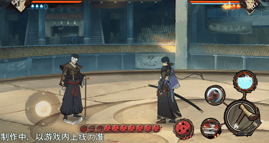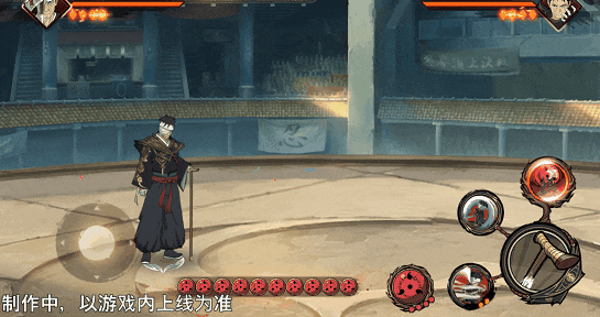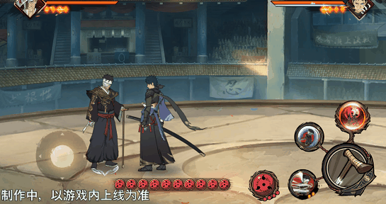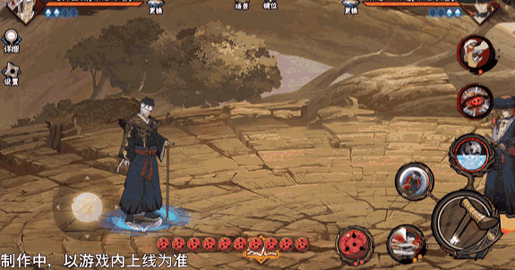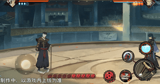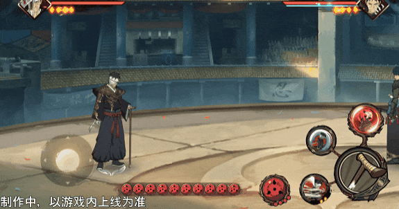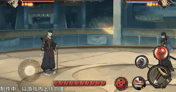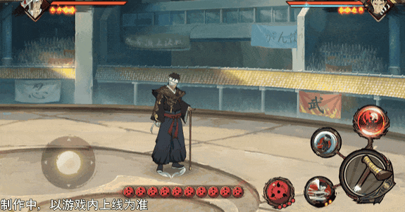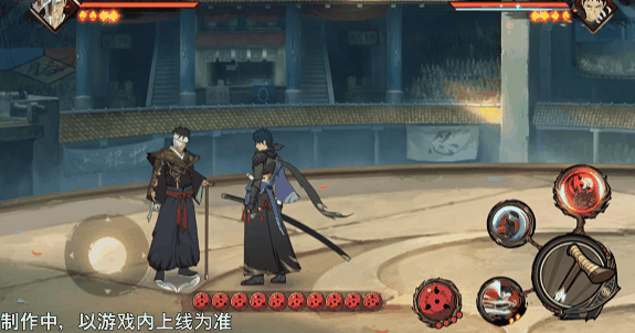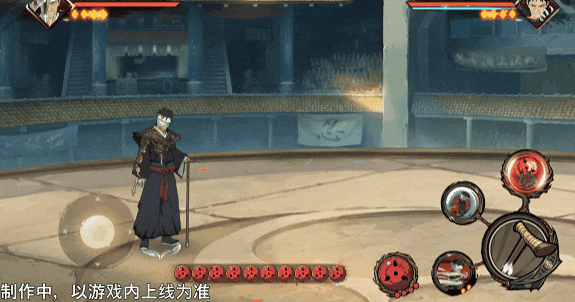 在屏幕下方有10颗写轮眼,场上的标记则代表漂泊团藏3秒前的位置,脚下的箭头会永远指向3秒前的位置。