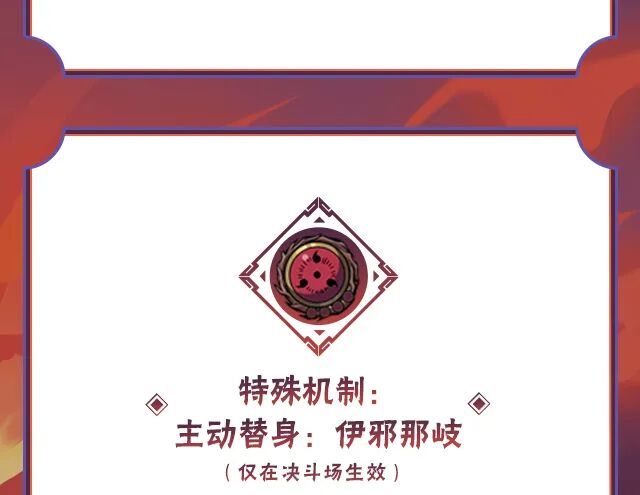 当漂泊团藏携带秘卷:幻术·此处非之术时,将变为专属秘卷:伊邪那岐。写轮眼数量>0时点按秘卷会消耗1颗写轮眼,与点按替身按钮发动伊邪那岐的效果一致。豚豚小提示:使用专属秘卷发动伊邪那岐时,若写轮眼数量为0,则秘卷变回:幻术·此处非之术;实战中还可利用专属秘卷和主动替身,回溯时间和位移与敌人灵活拉扯。