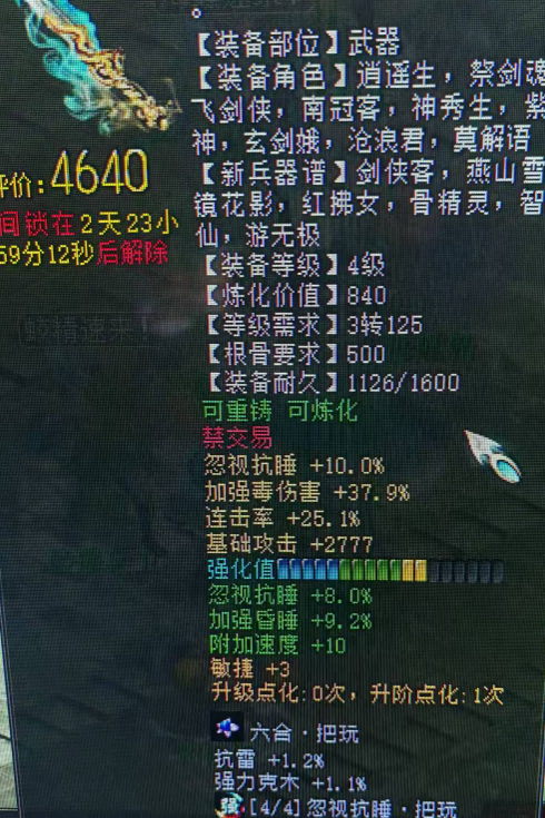 极品睡武器,忽视抗睡8+强睡9.2+敏捷10,炼化条条都在刀刃上。(素材提供:花果山-贵州飞天茅台)