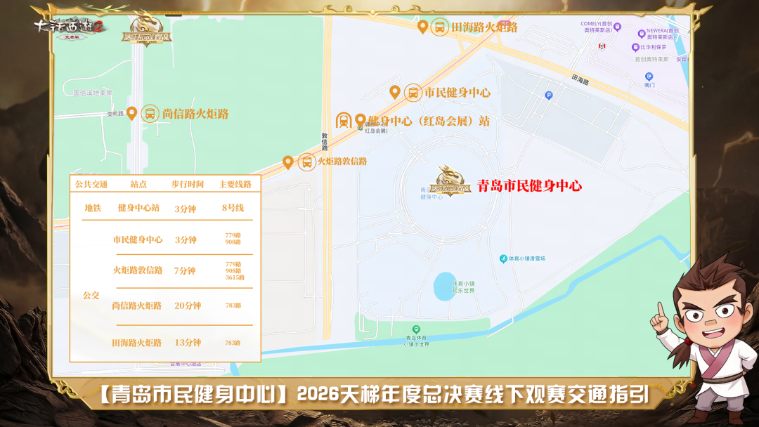 作为一年一度的巅峰赛事,本届线下总决赛无任何观赛门槛,全民无需买票无需报名均可前往,少侠可在4月23日~4月26日期间相约现场,具体场馆路线指引如下: