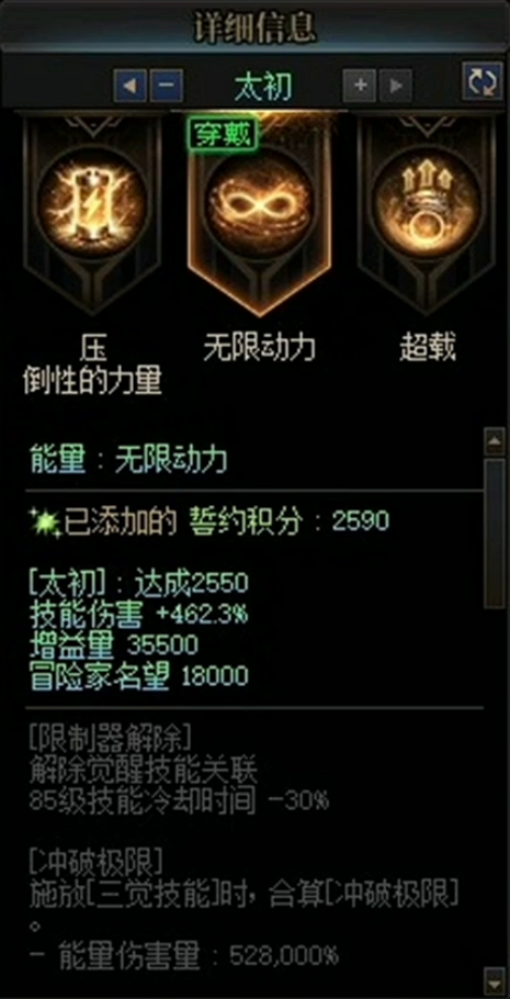 作为究极能量套的基础誓约模式,“无限动力”并没有走极端路线,而是对原有套装属性进行了全面的均衡优化。
