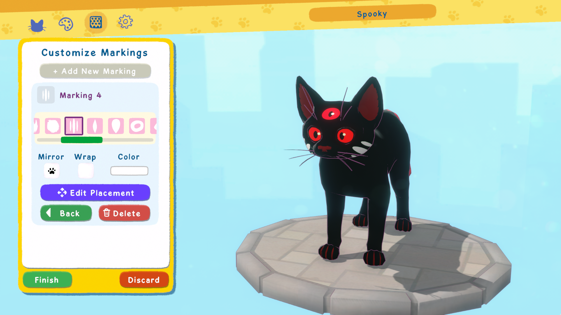 在自定义工具中,你可以编辑小猫的颜色、使用图案,并放置各种花纹形状,打造出你心目中的完美外观。✨不知道从何入手?我们在 YouTube 上提供了一系列非常棒的教程!