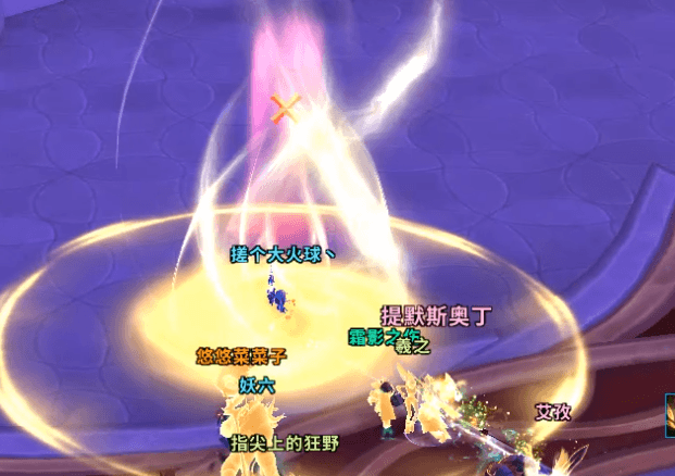 我们把大团分成四组人:治疗一组、远程DPS一组、近战DPS一组,坦克一组,分别站4个光柱。