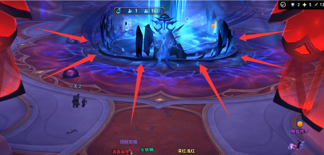 阶段三同样有拉弓【空虚之握】、以及刷吸收治疗盾【空无之冕】,这里就不再赘述啦。