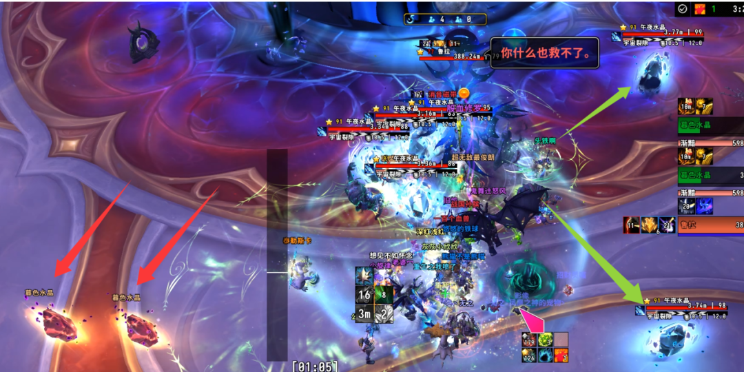 被打断的棱镜会碎成两种水晶:午夜水晶需要尽快击杀;暮色水晶则需要治疗尽快奶满。