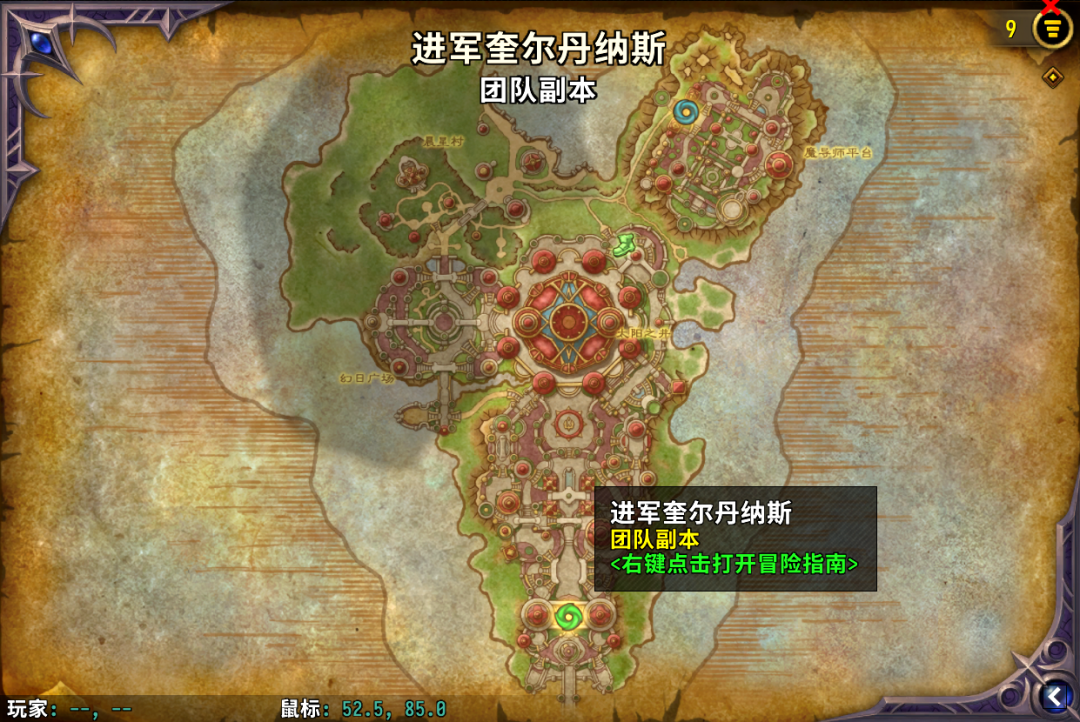 进军奎尔丹纳斯副本的入口,位于奎岛地图坐标(52,85)处。该副本共包含两个首领,其中2号首领鲁拉,是第一赛季真正的最终首领。