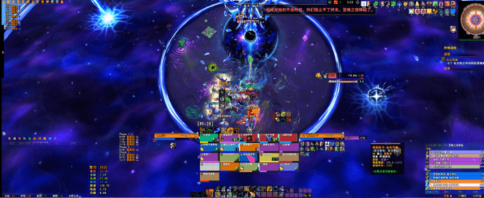 场上共有12个黑球【虚空之核】围绕鲁拉逆时针旋转。当第二阶段结束时,如果场上还有黑球存在,就会灭团。