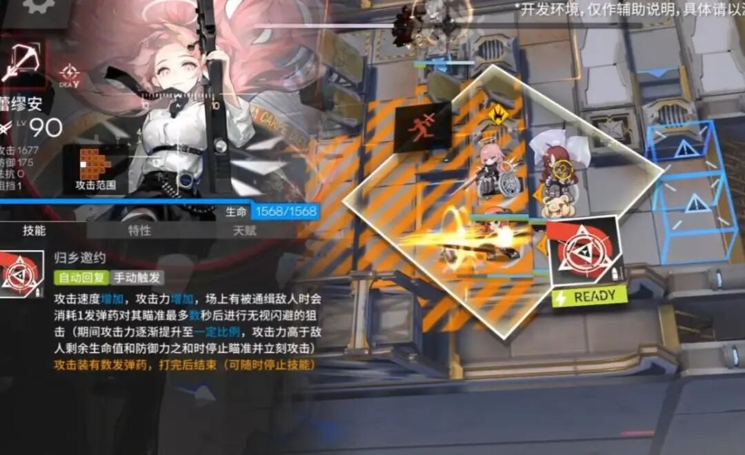 攻击速度增加,攻击力增加,场上有被通缉敌人时会消耗1发弹药对其瞄准最多数秒后进行无视闪避的狙击(期间攻击力逐渐提升至一定比例,攻击力高于敌人剩余生命值和防御力之和时停止瞄准并立刻攻击)