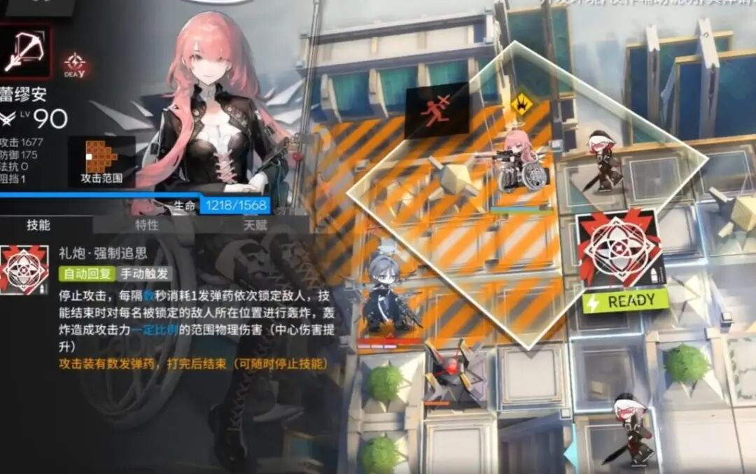 停止攻击,每隔数秒消耗1发弹药依次锁定敌人,技能结束时对每名被锁定的敌人所在位置进行轰炸,轰炸造成攻击力一定比例的范围物理伤害(中心伤害提升)