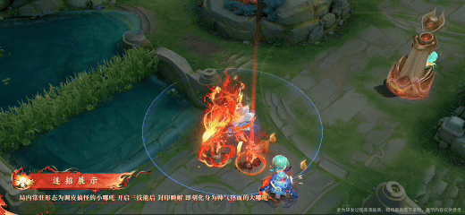 注:对局常规状态下为少年哪吒,解锁大招后解除封印,切换为成熟战斗形态。