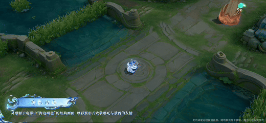 随机行走动作还原电影桥段,复刻躲避夜叉泡泡的灵动姿态;待机动作沿用海边踢毽彩蛋,呼应与哪吒的羁绊。专属战败、复活及出生动画贴合原作剧情,被击败后身躯石化、灵魂离体;复活与出生效果,分别取材莲藕重塑肉身、七色宝莲化生的电影设定。