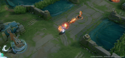 四技能开大敖隐化身为龙,搭配哪吒混天绫一同飞行,且还融入了火烧云与双色能量交织,复刻电影决战氛围,屏幕边缘凝结冰霜,地面展开盘龙法阵,浮现出陈塘关远景与悬浮灵珠。