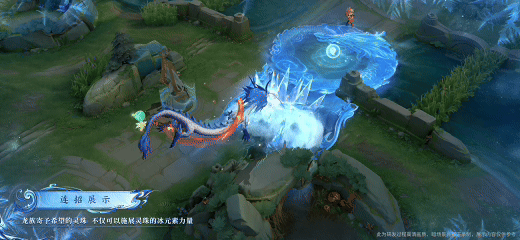 龙形状态下,敖隐向前释放冰刺冰封范围,落地变回人形并举盘龙冰锤,大范围冰雪炸裂,有种冰霜龙影盘旋现世的既视感。