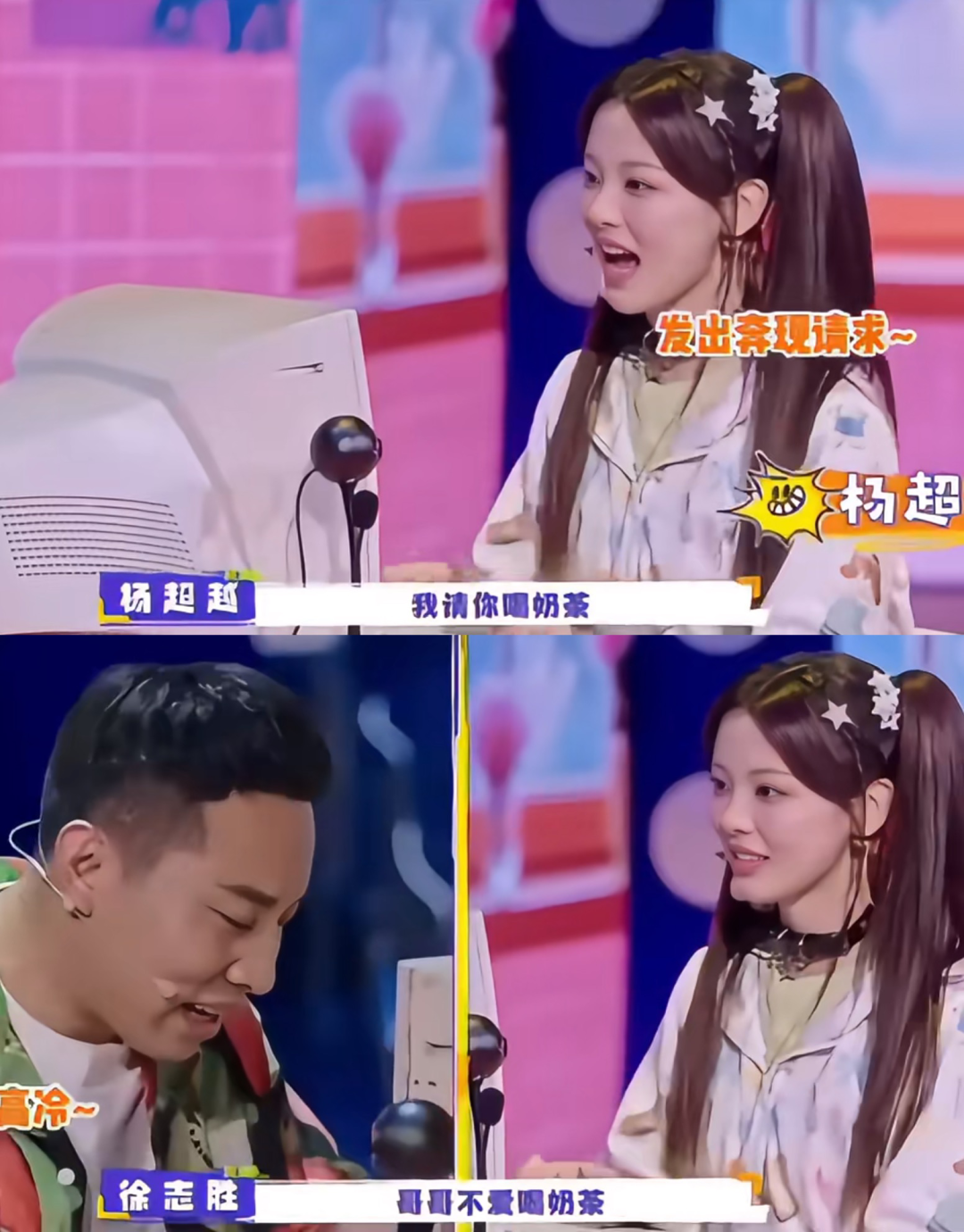 杨超越则完全没有偶像包袱,《值得爱》特辑里会化身千禧年辣妹,和徐志胜重现非主流爱情,结果被对方颜值暴击。