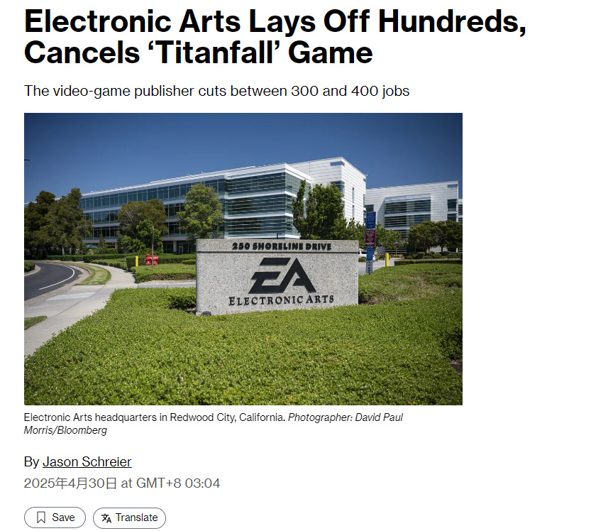 泰坦陨落的新作又被砍没了!重生工作室发布公告,确认已经砍掉了两个处于早期开发阶段的项目,并且在《陨落的武士团》和《Apex英雄》团队内部进行了优化调整,约有100名员工被裁。值得一提的是,据彭博社报道,重生工作室砍掉的项目中有一款是基于《泰坦陨落》IP的逃脱射击类游戏,代号“R7”。而早在23年,EA就取消了一款名为《泰坦陨落:传奇》的单人游戏,该项目和《Apex英雄》手游、《战地》手游一起被砍没了。只能说,这一经典IP确实是命运多舛啊!
