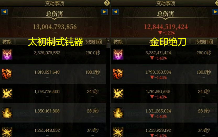 继“太初钝器”之后,旭旭宝宝又爆出了第2把太初武器“金印绝刀”,也就是俗称的“金刀”!如果在以往版本,红眼爆出了“太刀”,那就真的算完美毕业了。但这个版本的“太刀”比较尴尬,既没有太高的伤害加成,也没有足够多的冷却缩减,属实有点鸡肋了。