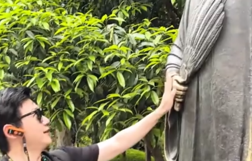 49岁陆毅和家人游都江堰,偶遇诸葛亮雕像直呼:丞相,我们终于见面了