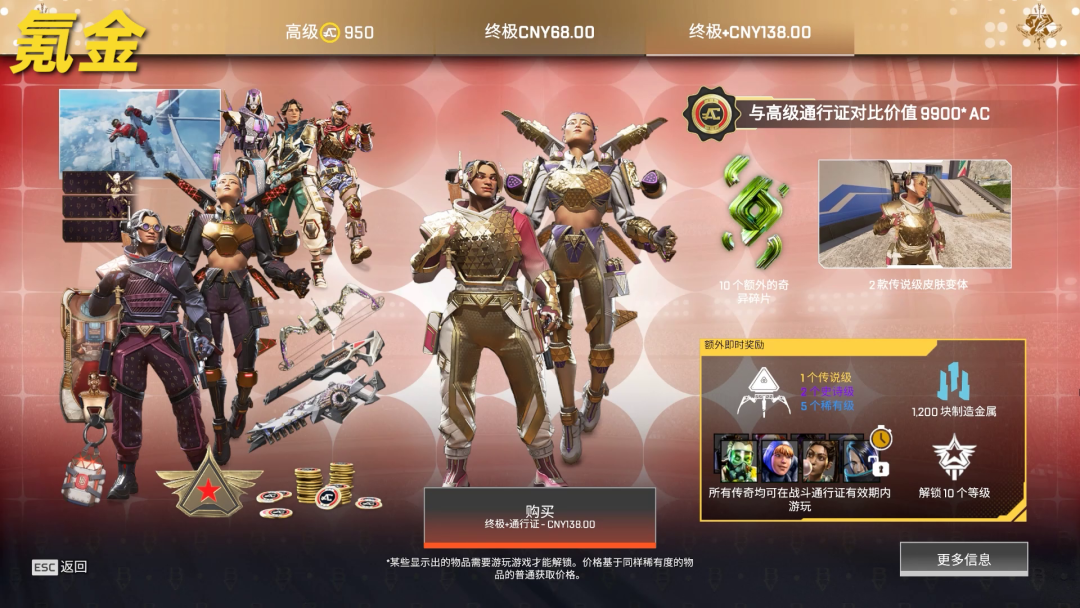 然后在原来通行证的基础上还多了一个高级+通行证,不过不能用金币买,售价138。
