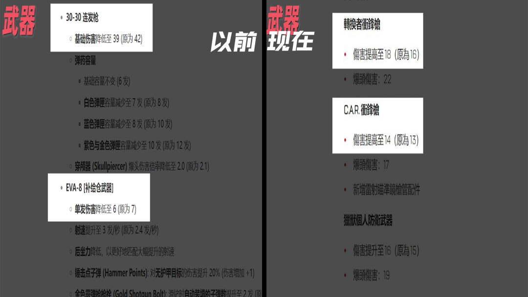 武器的话,之前的平衡思路是不断地削弱武器伤害而近两个版本,重生是不断地增加武器伤害来,减少TTK。