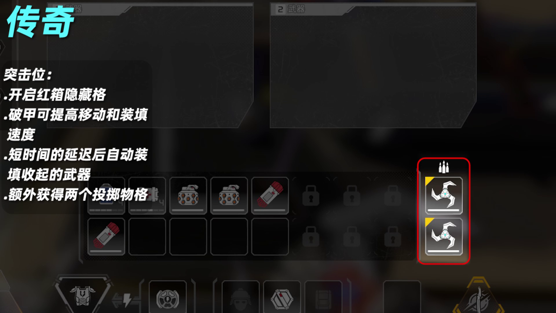 突击位在原有开红箱子的基础上,增加了破甲后加速,自动换弹,额外携带手雷的效果。