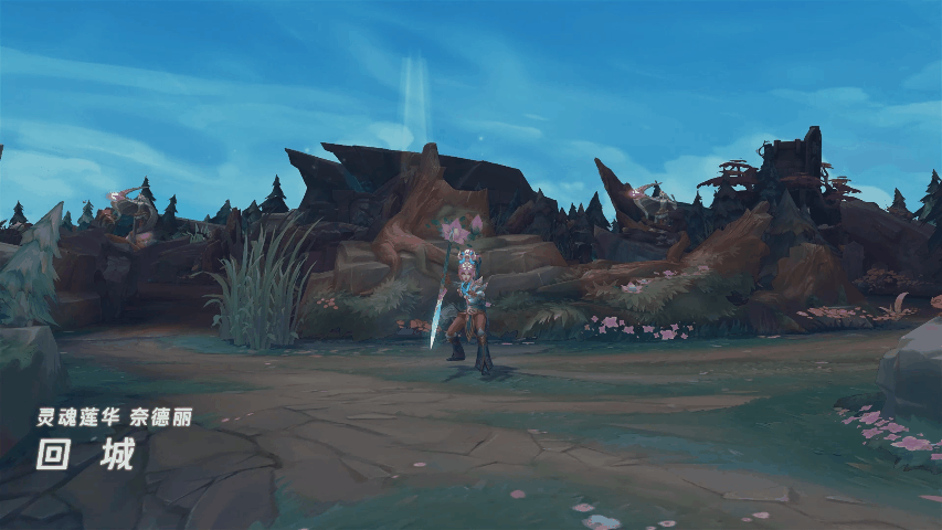 奈德丽警惕地环视四周,随后行云流水般挥舞手中的长矛,跪于地面后虔诚地仰望天空,随即回城。