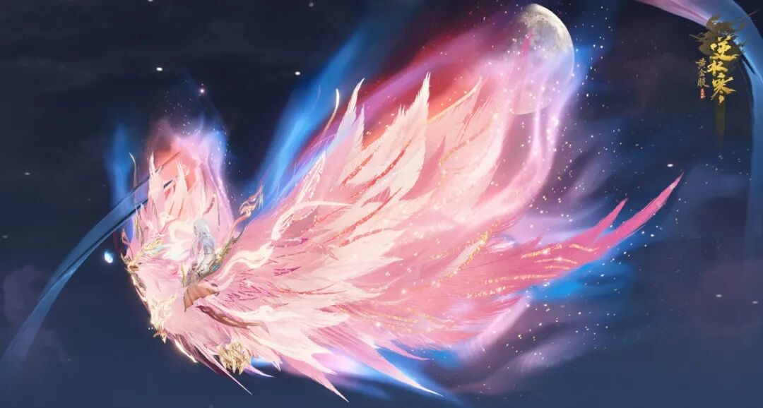 炎羽明天际,炽影撼九天。单人飞行祥瑞【炽翼明空】羽翼自绯粉渐染至赤红,若燃烧的晚霞倾泻天际,末端翻涌幽蓝焰光,似星辰璀璨耀眼。