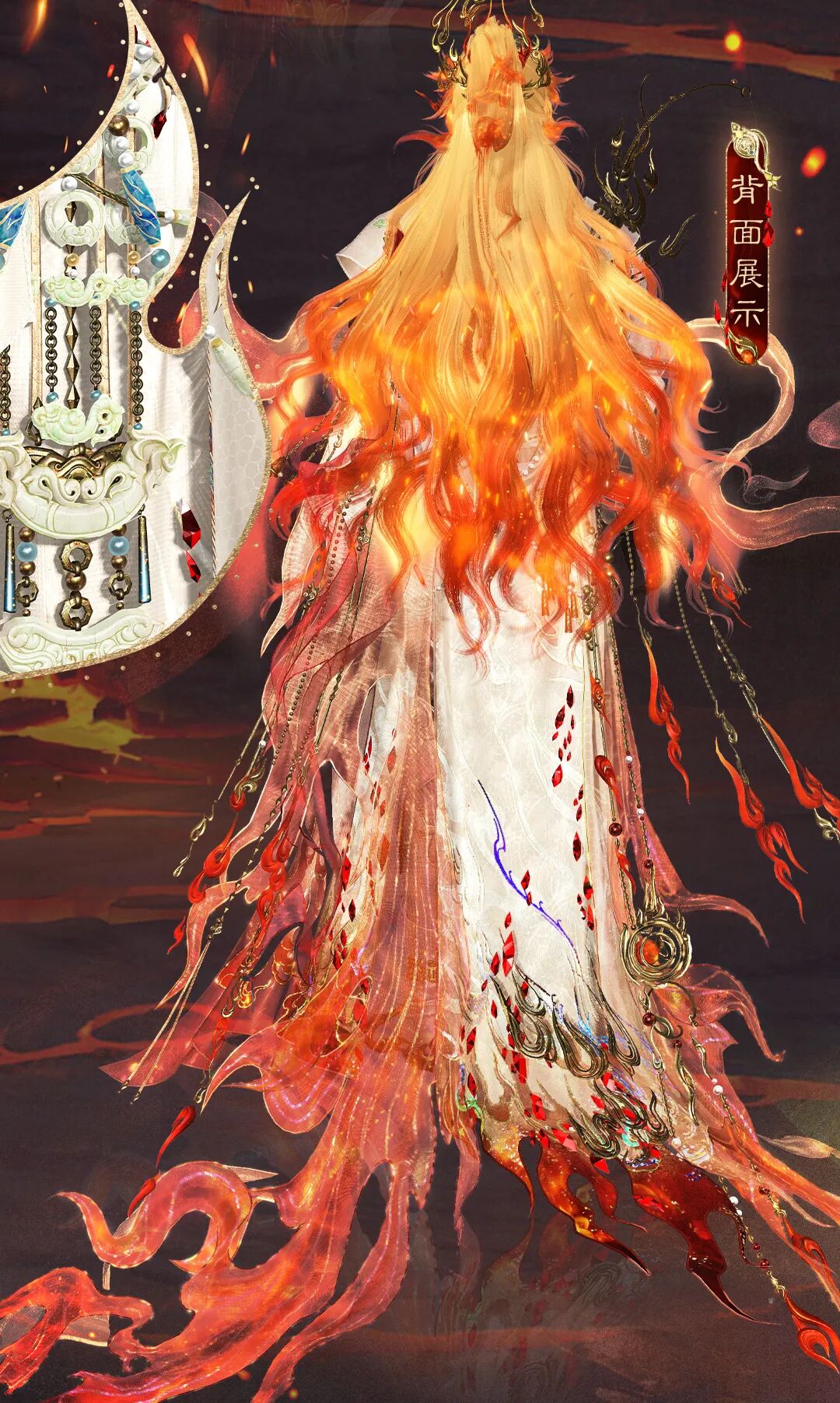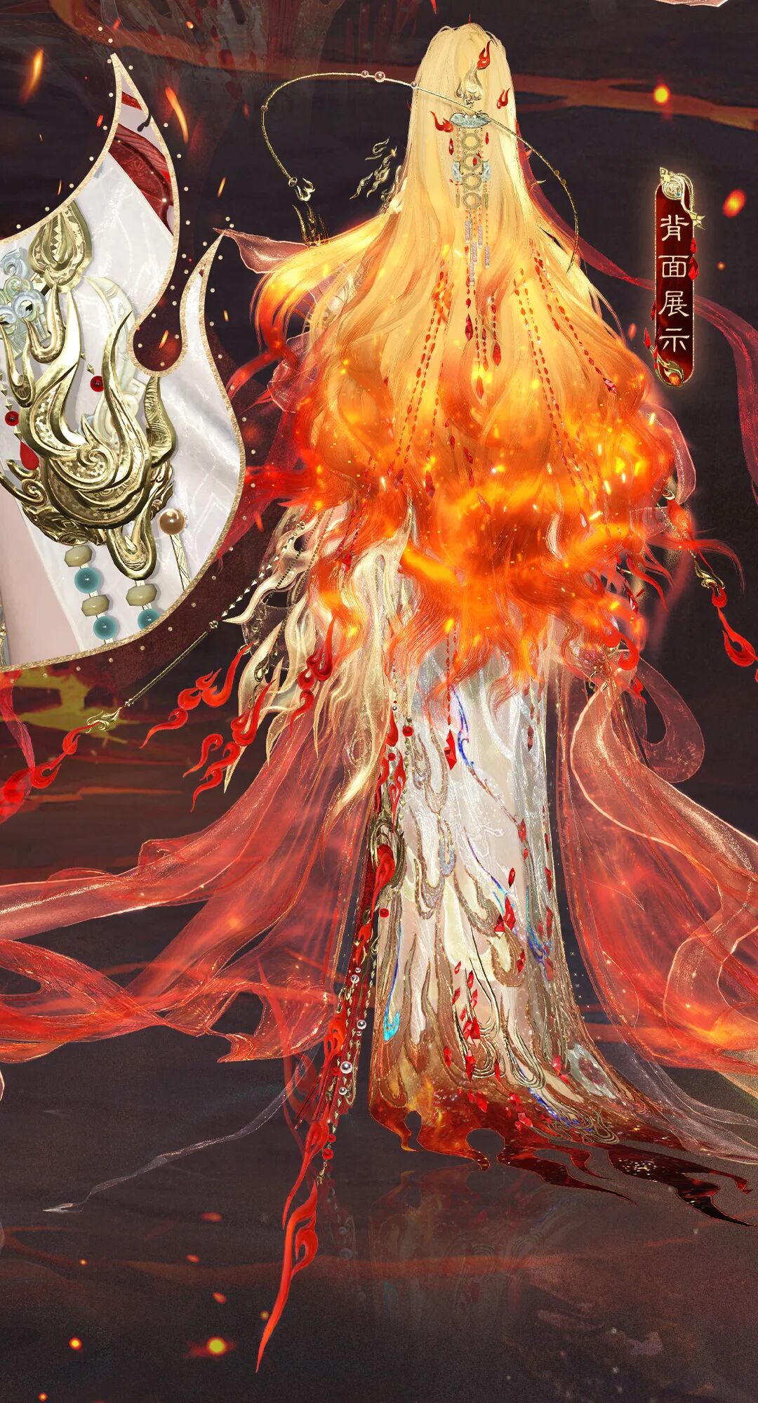 荧惑昭辉灼长夜,沸焰残星纪华年。稀有背饰【沸焰昭辉】以熔浆火核为心,金焰作环,赤火如蛇肆意游走。携毁天灭地之威,彰火神之无上神力 。