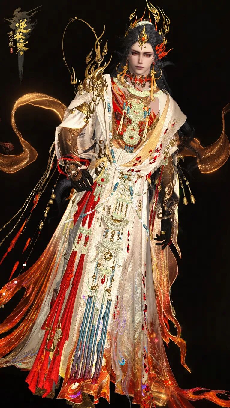 男款时装似从神话中款款而来,大气简洁的设计自带威严之气,衬得少侠气宇非凡。周身环绕的每一缕焰光,都在宣告着神火的绝对统治 。