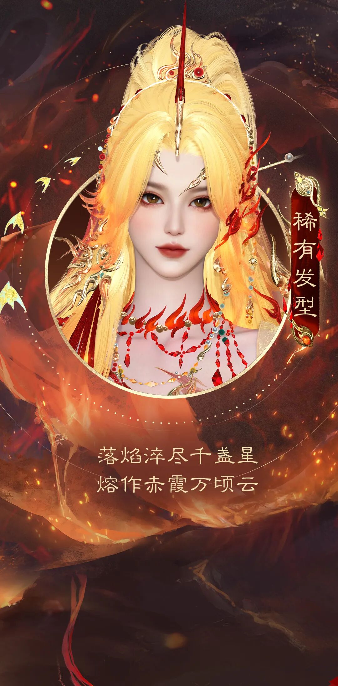 落焰淬尽千盏星,熔作赤霞万顷云。稀有发型【淬星熔金】以耀目金芒为底色,渐变至炽热橙红,恰似焰光渐燃,每一缕发丝都带着无尽的炽热与灿烂。
