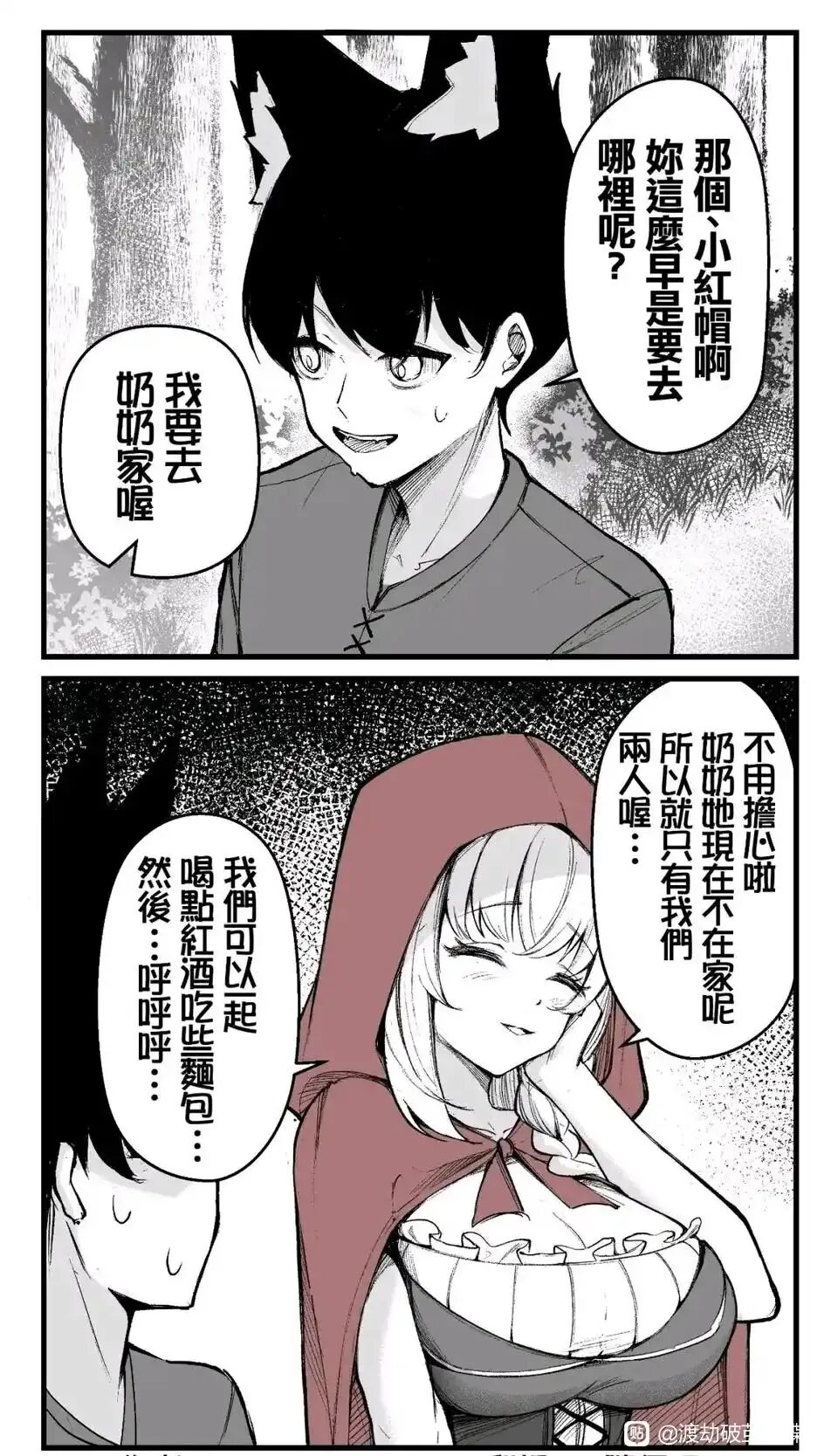 大灰狼和小红帽的故事,我们都知道哈,这是一部众人皆知的作品,自然也有很多同人漫和同人图了。之前缘叶就看到了这篇漫画,终于有机会推荐给你了,真是好呢。