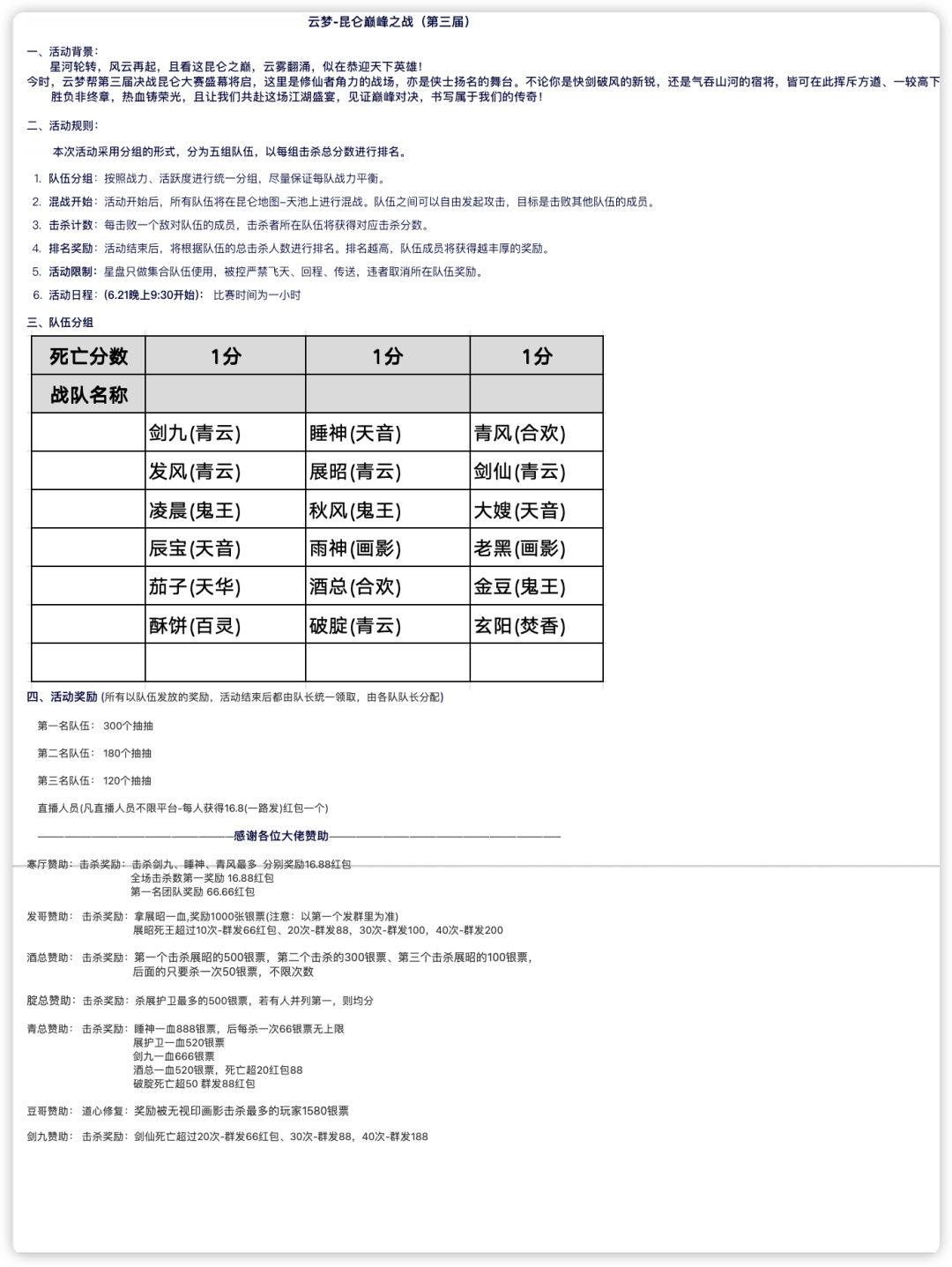 剑九帮主,贴心的还做了规则,分队,还有各种大佬的赞助。