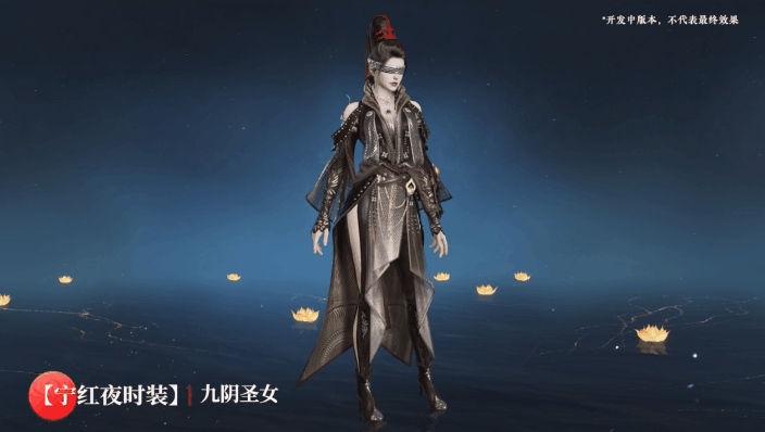 贴身黑甲缀满珍玉珠宝,胸肩擎着银质狼头,泛出幽幽蓝光,背后白狼裘毛垂落,如天狼啸月。