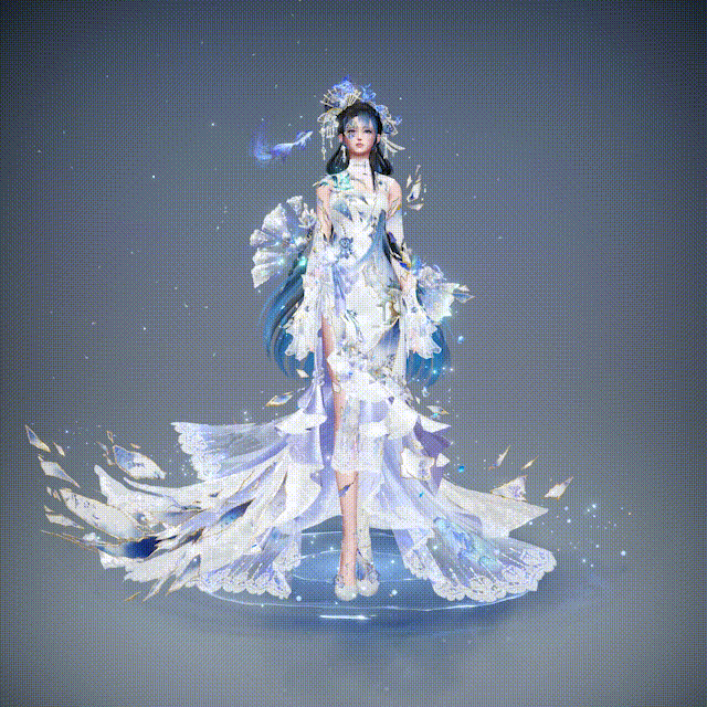 活泼又灵动的青花瓷小裙子!蓬蓬的裙摆像碎瓷片拼成的,蓝白花纹间还有彩色晕染,跑起来超好看~头发上别着各种各样的花花和扇子发饰,袖子是透明的长纱,手臂也有瓷器裂纹的设计,但加了金边点缀,有没有感觉俏皮的精致感就出来啦~