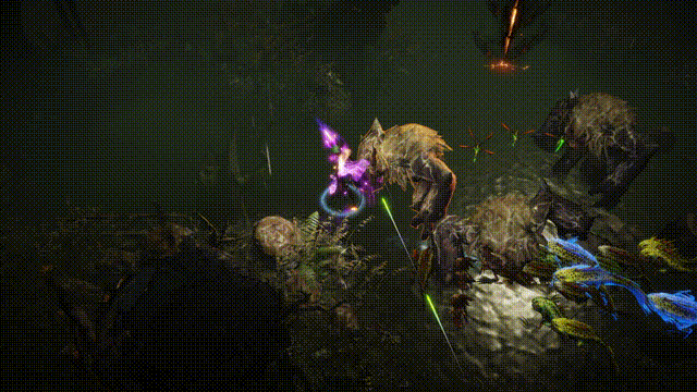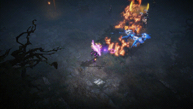 雾刃化作一道紫色流光快速穿行于战场,炫光环绕的双刃借助黑暗之力调动巨浪,顷刻间制造出无数潮汐漩涡。