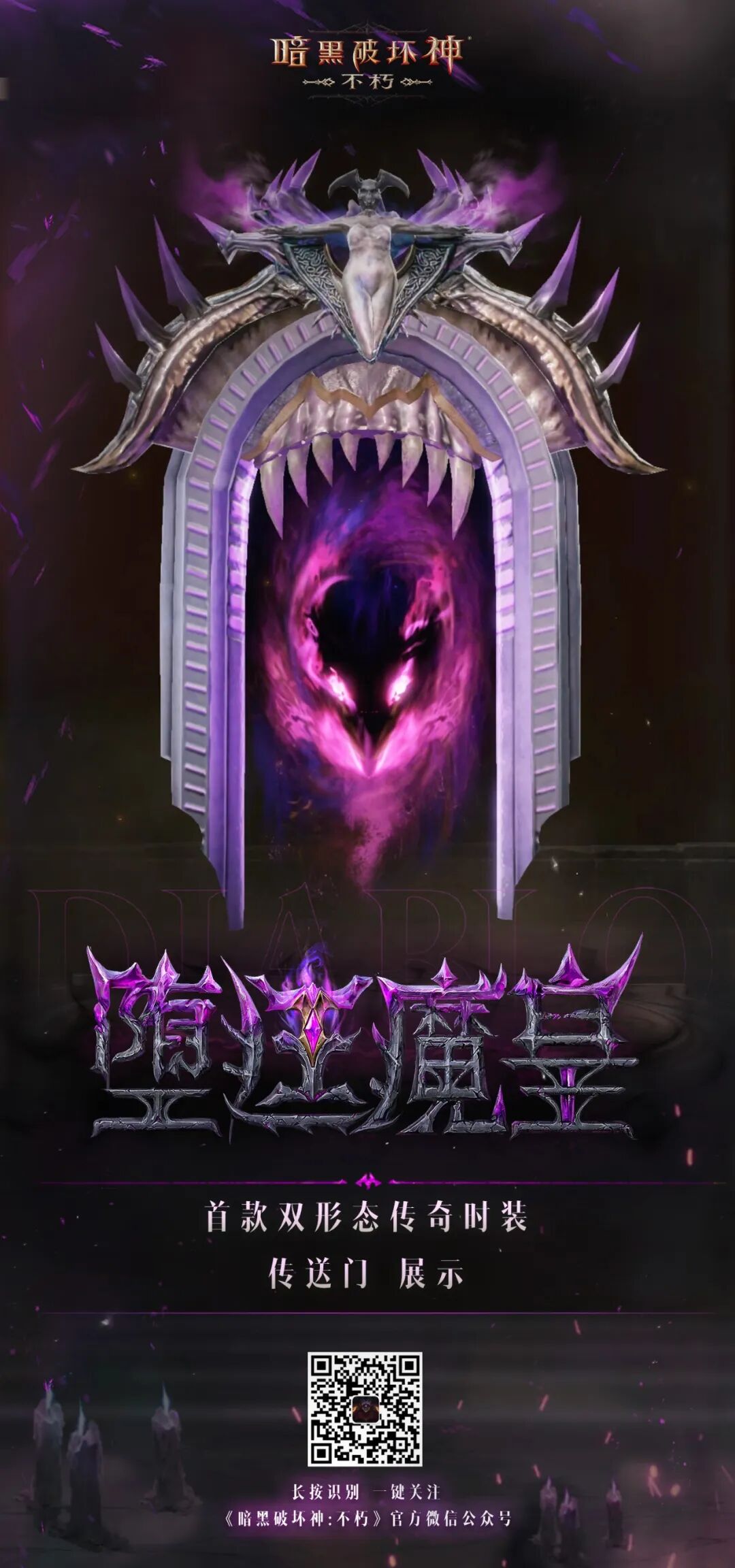 迪亚波罗已苏醒,为庇护之地埋下了名为恐惧的种子。速速拿下这款双形态传奇皮,穿上“堕廷魔皇”,冲破恐惧梦魇,驾驭堕魔之力,成为黑暗中真正的主宰!你,准备好接受来自深渊的考验了吗?