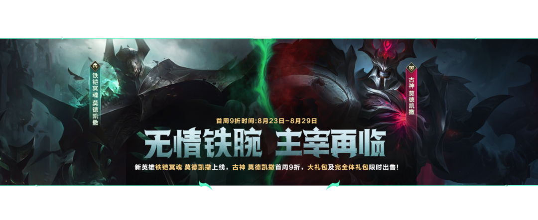 新英雄莫德凯撒将于8月23日0点上线,伴生皮肤古神 莫德凯撒首周享9折优惠~