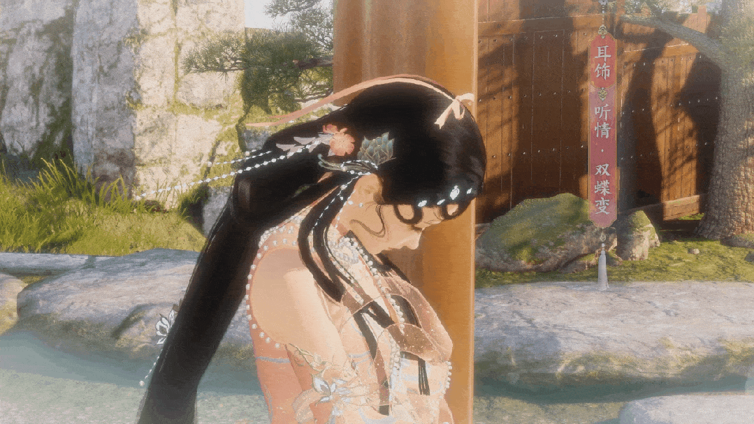 莹润珍珠串成细腻情思,与发间蝶影、繁花相衬,每一颗都藏着国风雅韵,轻轻摇曳时,便把古典浪漫晃成满眸星河。
