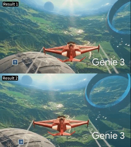 Genie 3 可以用文字描述来生成一整片世界,但生成的成品更加具有方向感和立体性,能够引发生动的实景体验。