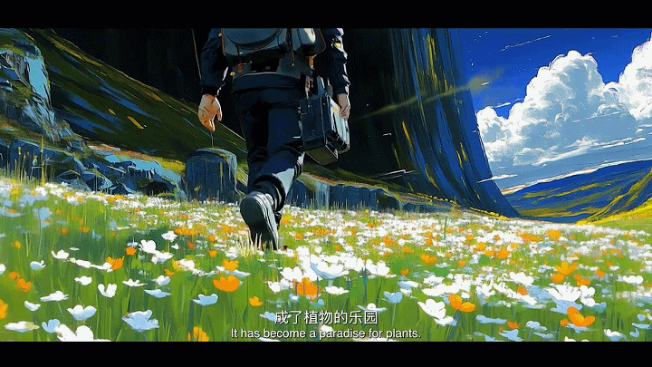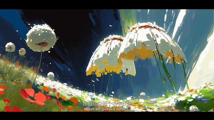 无论作画还是AI生成,画面都蕴含创作者独有的理解。AI动画的背后不只是“文转图”的物理过程,团队需要不断设想色调以及场景设计背后的意义。