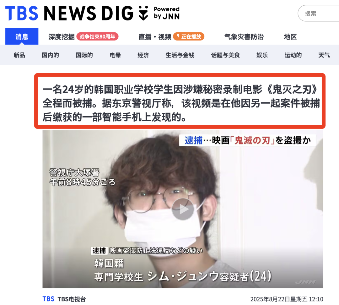 24岁韩籍留学生盗录《鬼灭之刃无限城篇》被捕!面临10年监禁,国籍曝光引爆全网论战!