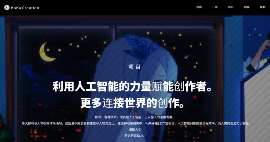 比如我们曾经说过的一家公司KaKa Creation,虽然之前的AI动画版图铺得很开,但目前并没有看到太多进展。