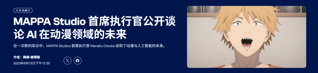 几年前,MAPPA的社长大冢学就表示,MAPPA的工作人员正在研究 AI 在动漫中的应用,但目前我们没有看到任何应用。